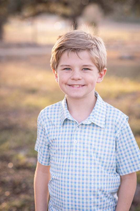 Watercolor Plaid Polo Short Sleeve Shirt