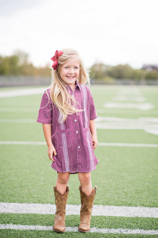 Guayabera - Classic Maroon & White Gingham Dress