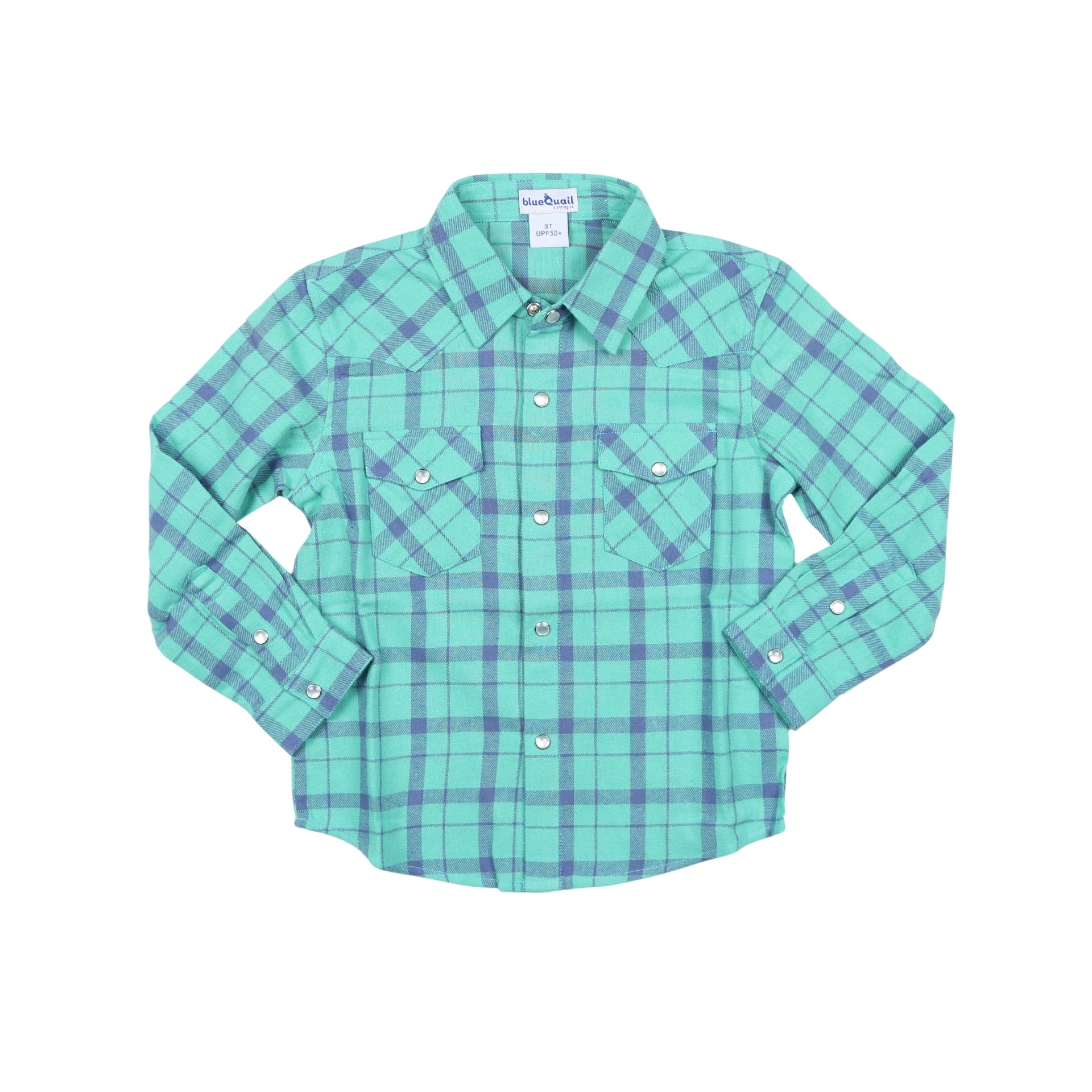 Blue & Green Plaid Flannel Pearl Snap Long Sleeve Shirt